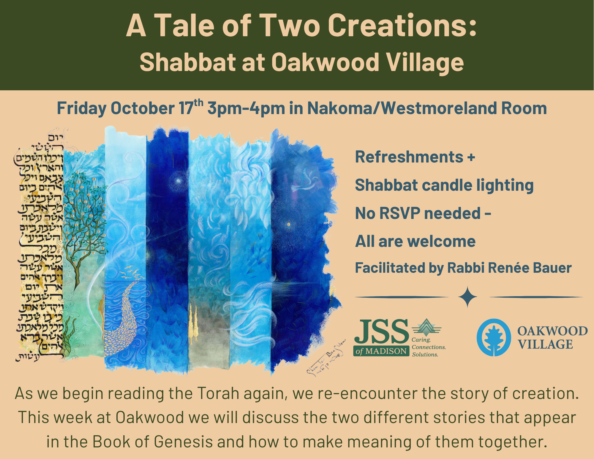 As we begin reading the Torah again, we re-encounter the story of creation. This week at Oakwood we will discuss the two different stories that appear in the Book of Genesis and how to make meaning of them together.